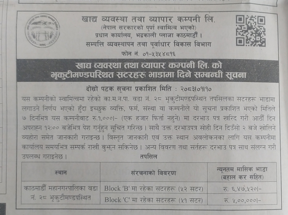 कोभिड-१९ का कारण सृजित निषेधाज्ञा को विषम परिस्थितिमा खाद्यान्न व्यवस्थापनमा कम्पनीद्वारा जारी प्रेस विज्ञप्ति(३)